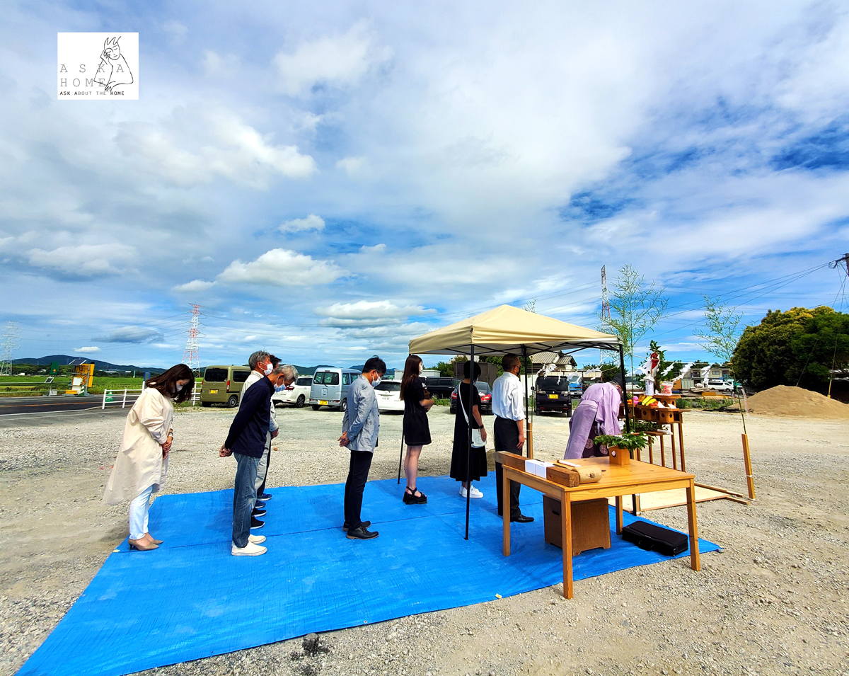 八幡西区F様♪地鎮祭 工務店と建てる家♪人気の平屋♪建築家によるオリジナル設計!