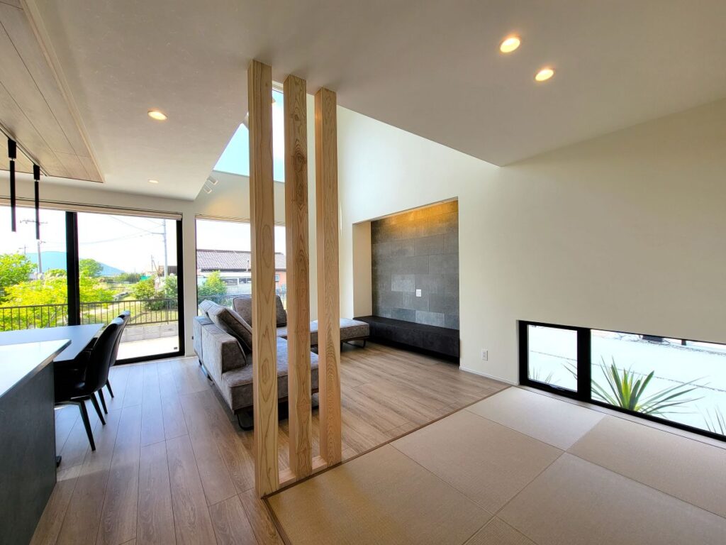 ■自然光が差し込む明るいリビングと小上がりスペース