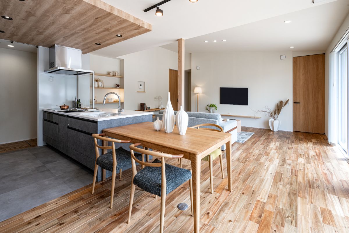 敷地の広さと自然を取り込み、家族がのびのびと暮らせる住まいです。毎日の便利さと心地よさを大切にした、平屋が完成しました。